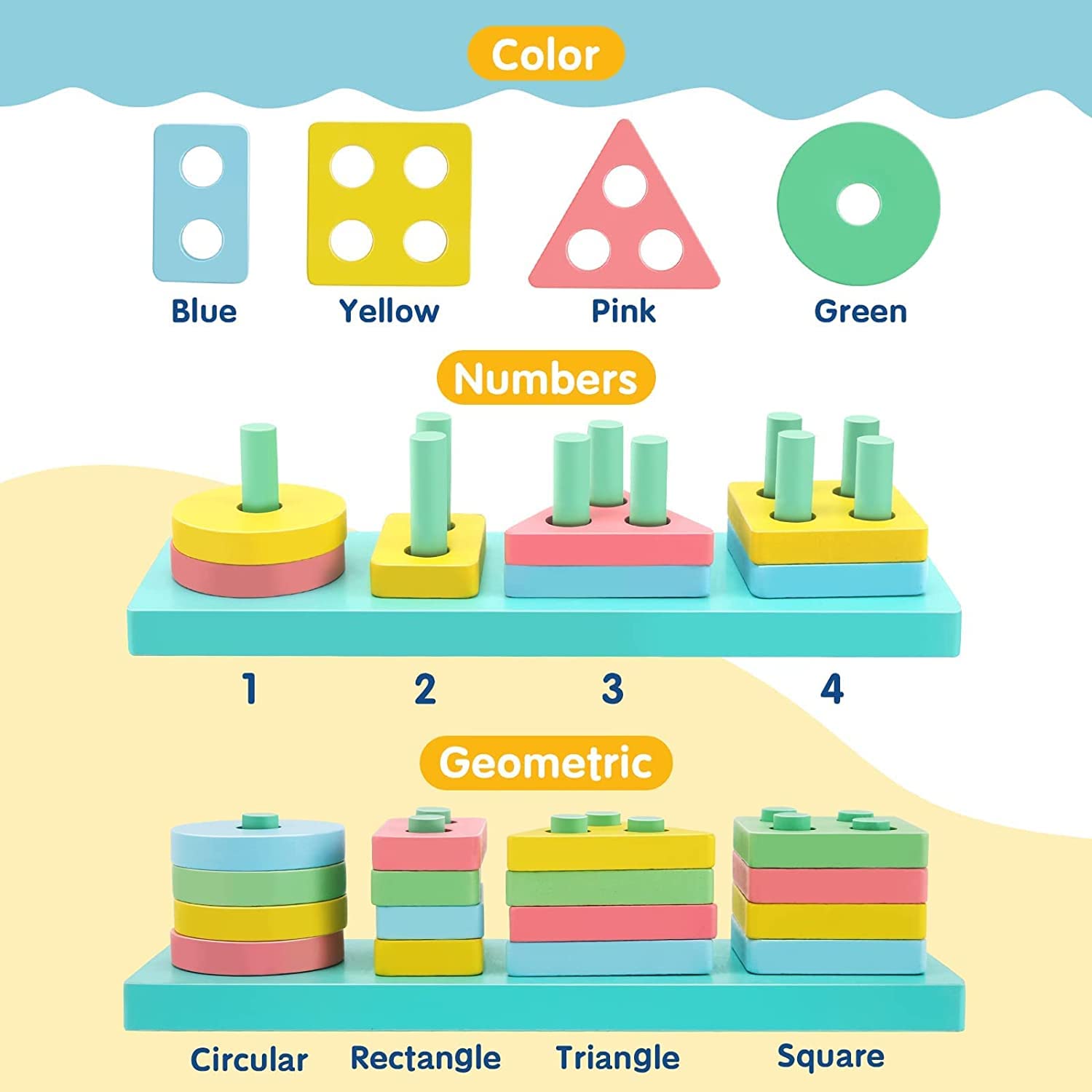 ✔PERFECT WOODEN TOYS GIFT FOR CHILDREN:Safety Guarantee:Made of the Environmentally friendly high-quality wood and BPA-free. Water-based paint, safe and non-toxic, not easy to fall off. The edges of our wooden stacking toys are exquisitely smooth and won't hurt your baby's skin. We insist on using high-quality craftsmanship as well as materials to make exquisite and safe products for children and toddlers with all our hearts.